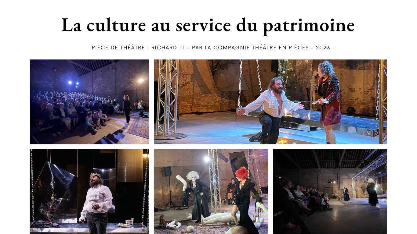 C’est dans les granges du château que s’est déroulée la pièce de théâtre Richard III, le samedi 29 juin 2024, à Bellegarde. Initialement la pièce devait être jouée au pied du donjon, entouré de ses douves, mais faute d’un temps incertain, celle-ci s’est déroulée dans les granges du château, offrant un cadre tout aussi majestueux. Cent quinze personnes se sont rassemblées dans les granges, merveilleusement mise en lumière pour l’occasion, notamment au niveau de sa charpente.