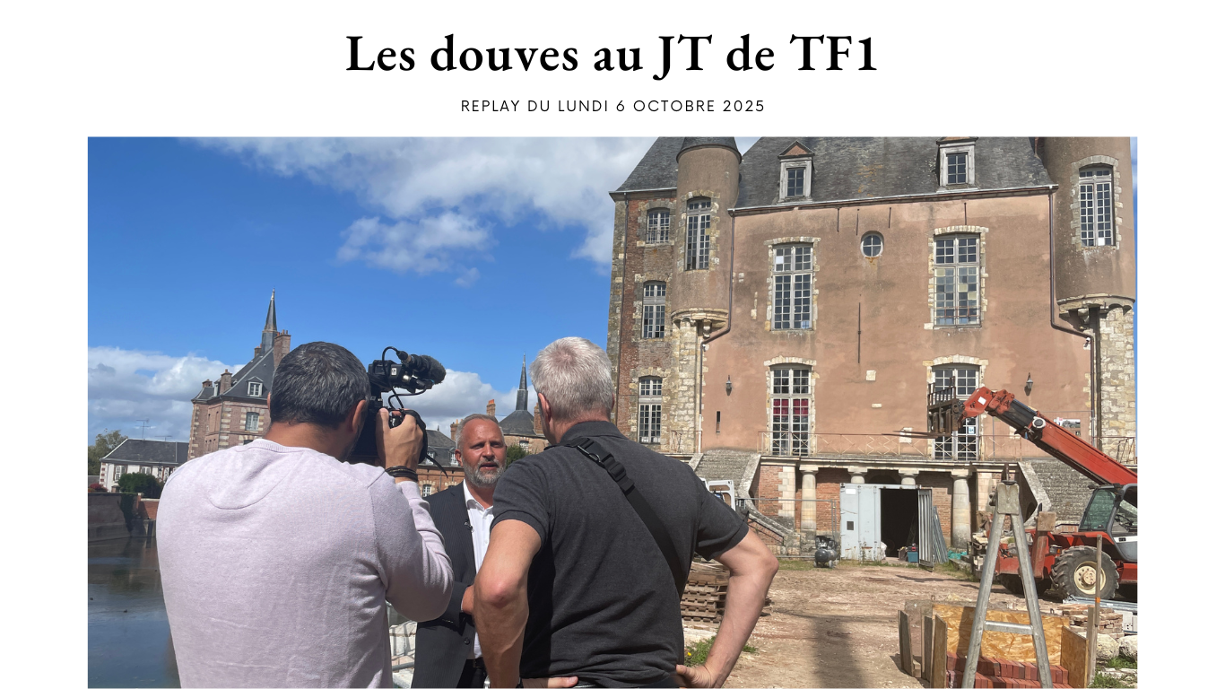 Suite à cette victoire du projet de restauration des douves aux Coups de Cœur du patrimoine, l’équipe de journalistes de TF1 est venue réaliser un reportage pour Le 13h, en direct des travaux de restauration.