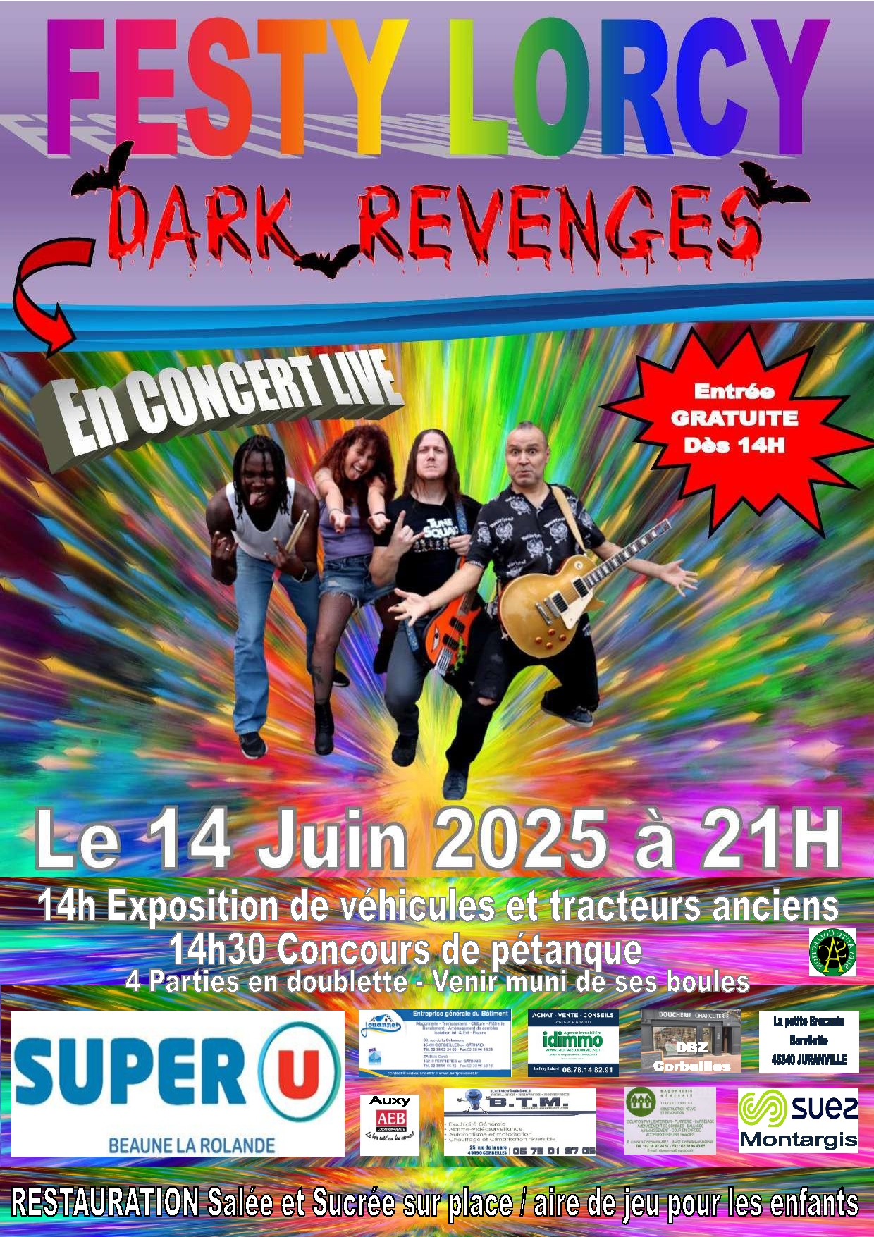 Venez assister au Festy Lorcy avec des nombreuses animations tout l'après midi ET un concert en live avec les Dark Revenges à 21h.