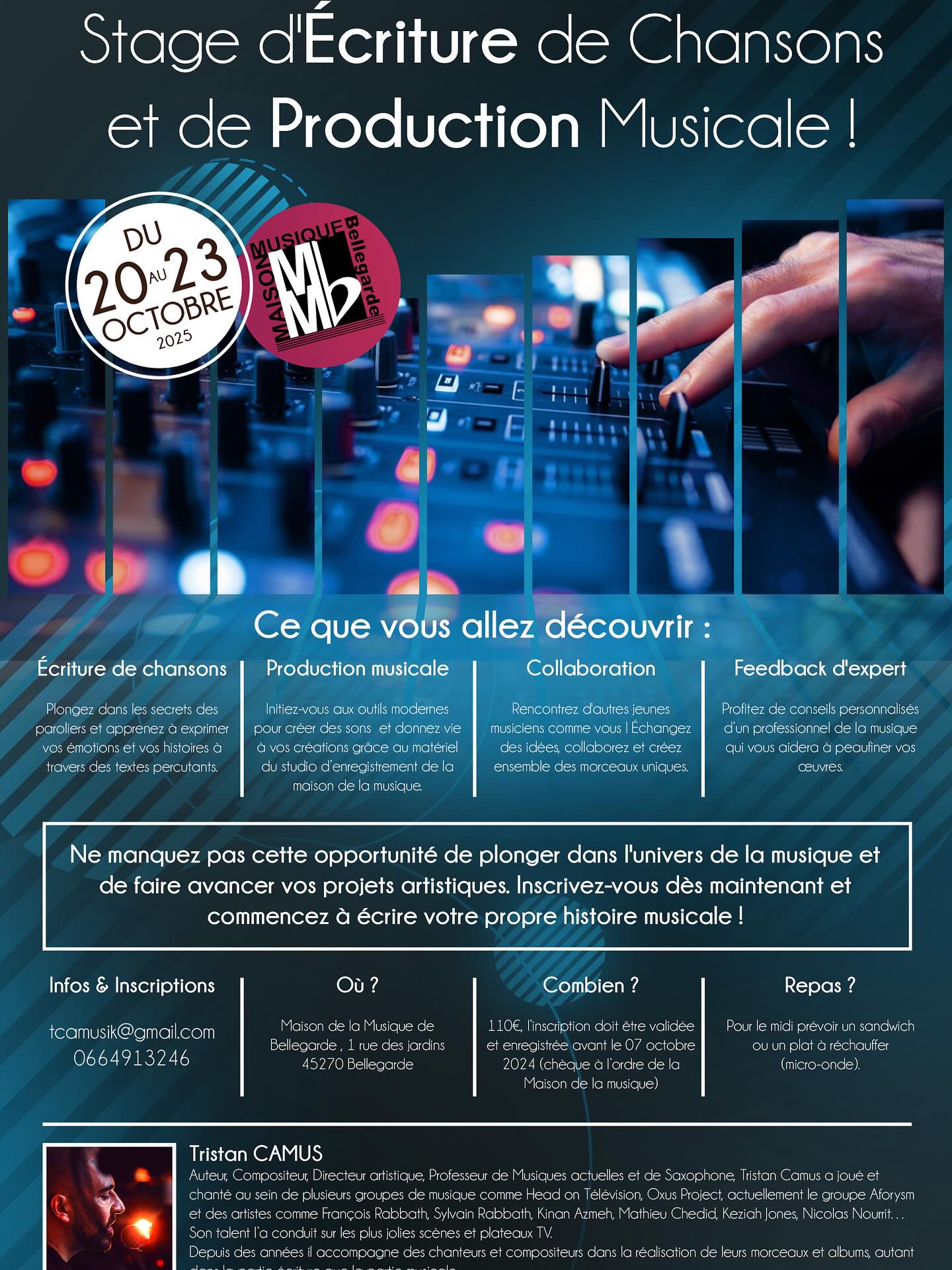Contact : M. Tristan Camus | 📞 06 64 91 32 46 | 📩 maisondelamusiquedebellegarde@gmail.com